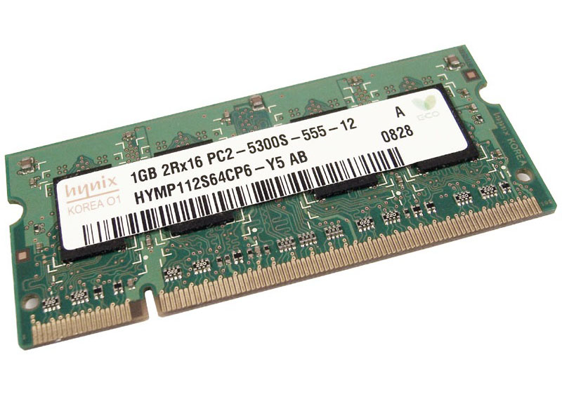 Оперативна пам'ять для стандартного робочого ноутбука новітнього типу. Виготовлена компанією Hynix (HYMP112S64CP6-Y5) в форм-факторі SO-DIMM, що означає її призначення для установки в системи ноутбуків.